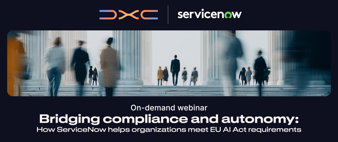 Complete the form to watch the webinar on how DXC and ServiceNow can help you build AI that is impactful, autonomous and compliant by design.